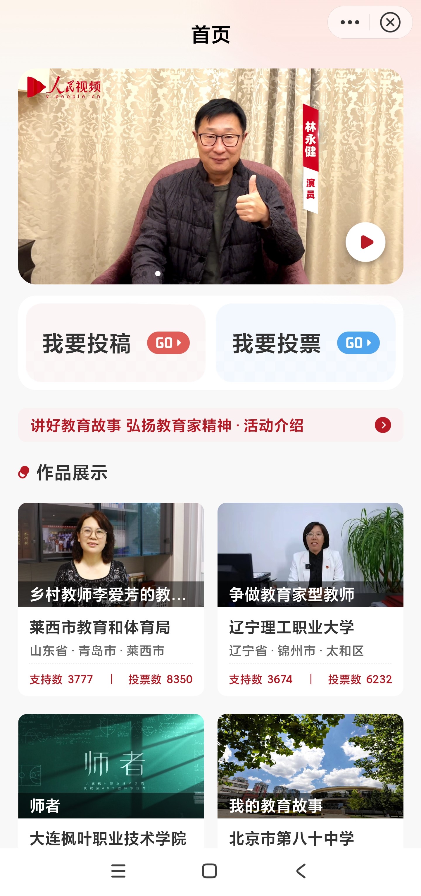 今年是新中国成立75周年,是实现“十四五”规划目标任务的关键一年,也是习近平总书记在学校思想政治理论课教师座谈会上的重要讲话发表五周年。在第40个教师节到来之际,人民视频特别推出“讲好教育故事 弘扬教育家精神”网络案例征集活动,邀请全国教师、教育工作者们分享教育智慧和创新成果,用影像描绘漫长教育生涯中最真挚的情感纽带,用镜头讲述师生双向奔赴的动人故事。