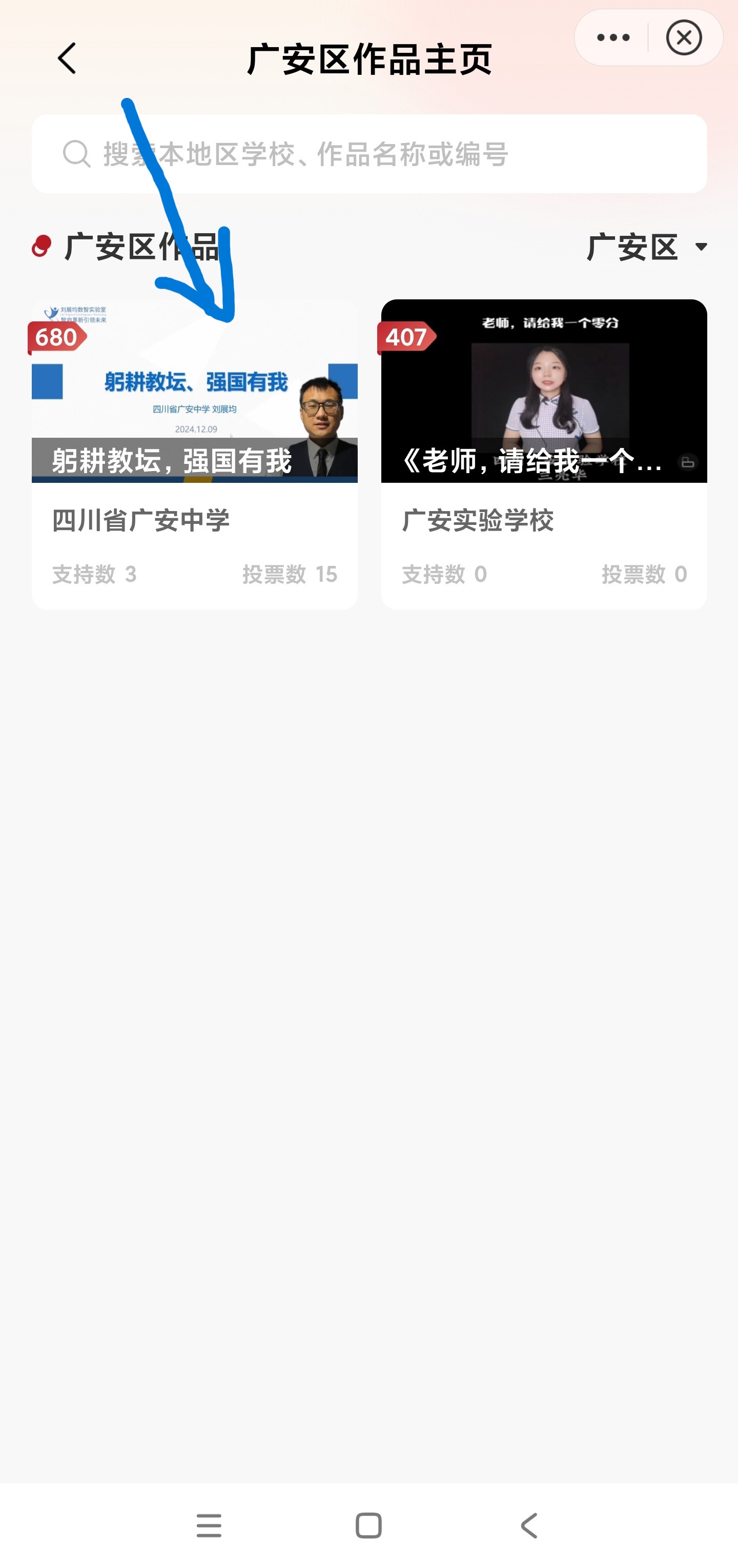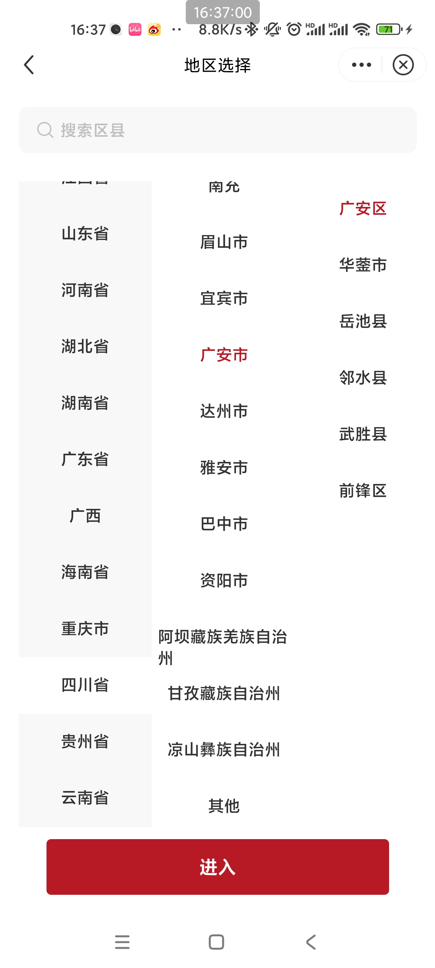 第4步 地区依次选择“四川省-广安市-广安区”,点击“进入”即可看到视频作品