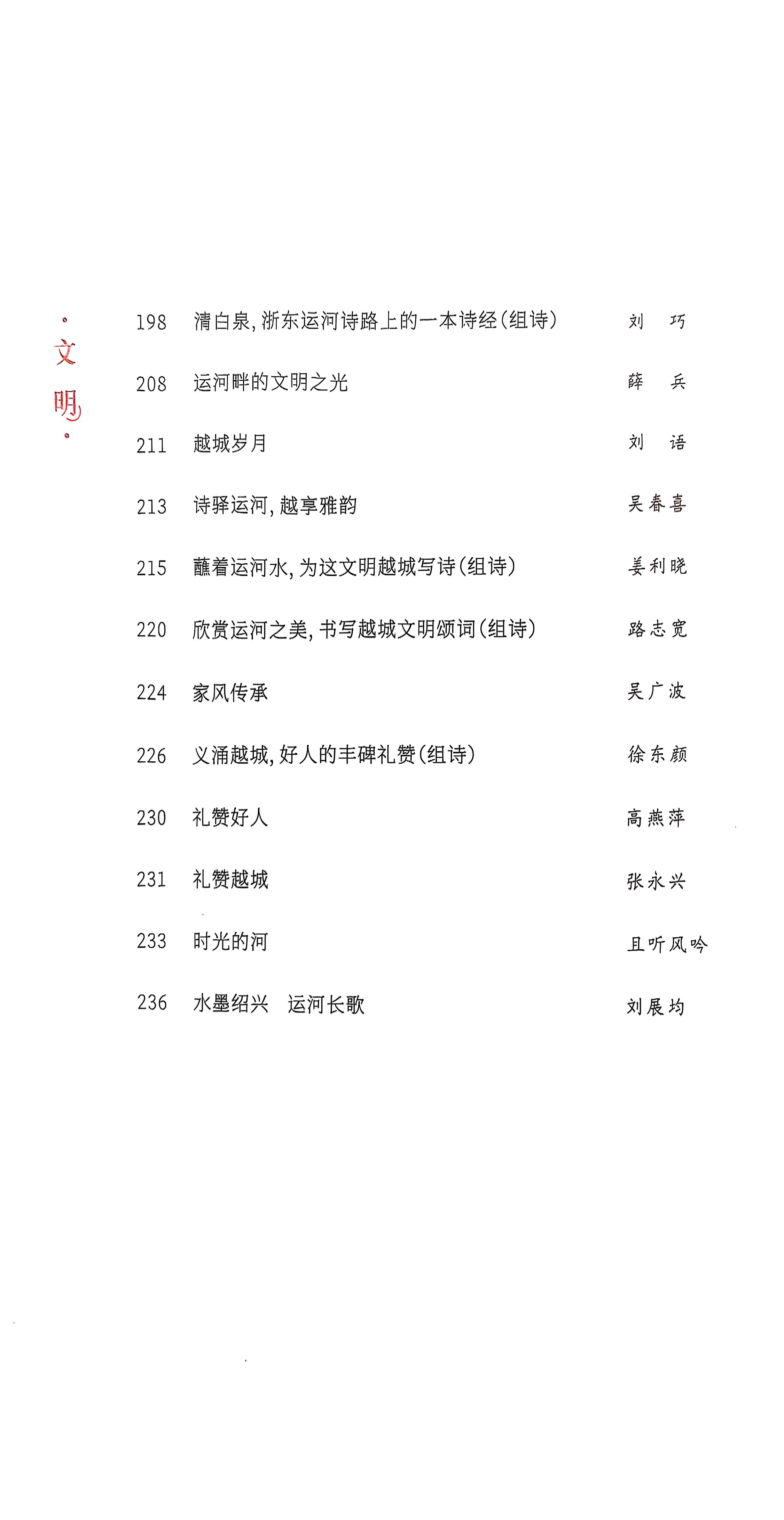 刘展均诗歌作品《水墨绍兴 运河长歌》参与由绍兴越城区委宣传部主办的“诗驿运河 越享雅韵”——“乐融杯”运河文明诗歌大赛入选诗集《越水长吟》[1]。