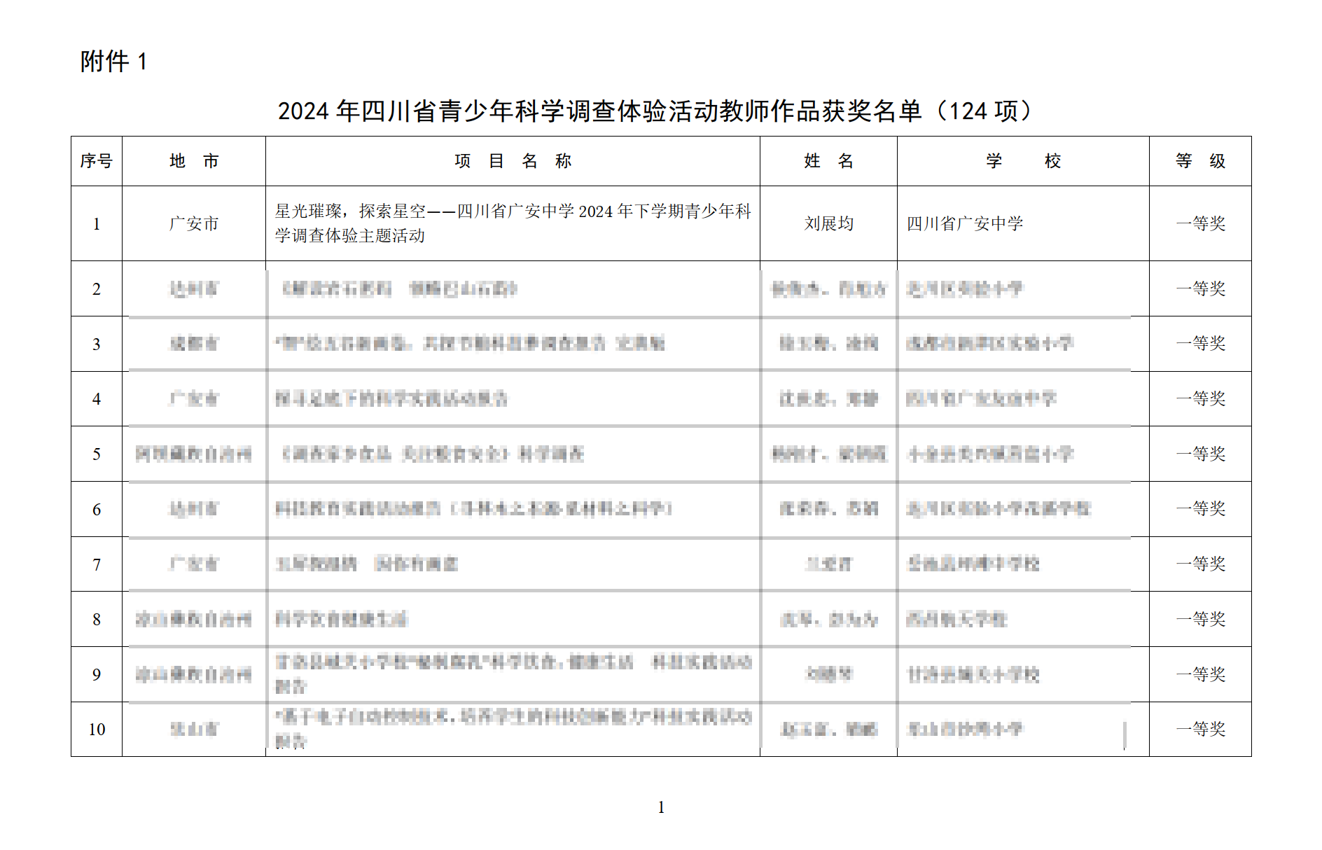 关于2024年四川省青少年科学调查体验活动评审结果公示的通知