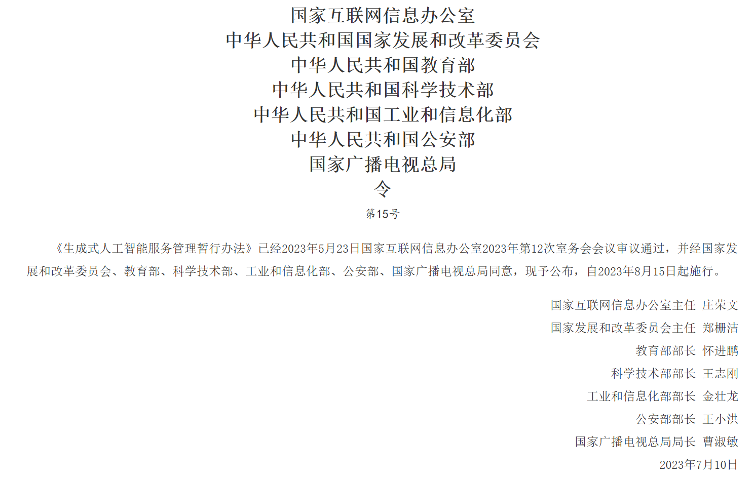 第十六条 网信、发展改革、教育、科技、工业和信息化、公安、广播电视、新闻出版等部门,依据各自职责依法加强对生成式人工智能服务的管理。