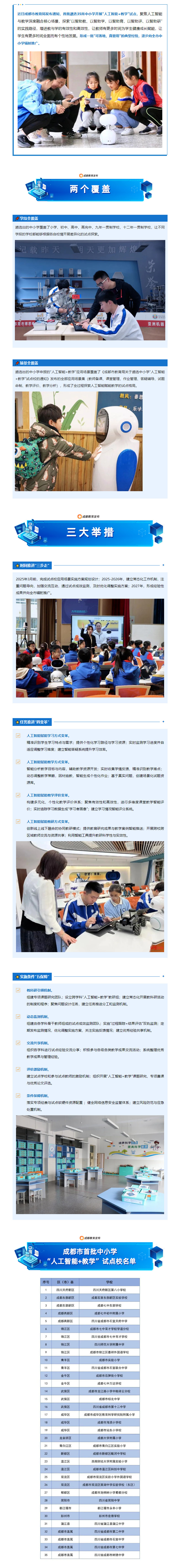 近日成都市教育局发布通知,首批遴选35所中小学开展“人工智能+教学”试点,聚焦人工智能与教学深度融合核心场景,探索“以智助教、以智助学、以智助育、以智助评、以智助研”的实践路径,增进教与学的有效性和高效性,让教师有更多时间为学生健康成长赋能,让学生有更多时间全面而有个性地发展。形成一批“可落地、真管用”的典型经验,逐步向全市中小学辐射推广。