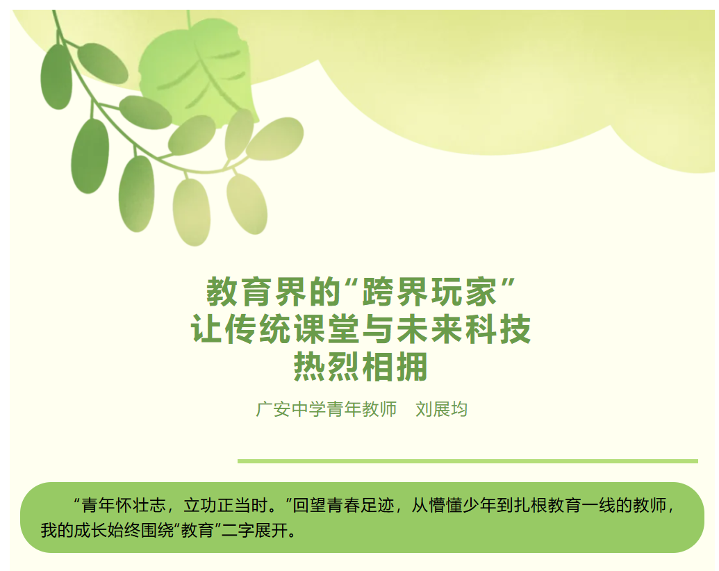 刘展均同志的青春故事展现了他在教育领域的跨界探索与成就。文章提到,刘展均自幼受到师长的影响,在高中时期就立下教育理想。他在大学期间三次支教,深刻体会到教育的力量和责任。近年来,他积极响应国家教育数字化战略,创立“刘展均数智实验室”,致力于AI与教育的融合,并取得了多项荣誉。他的故事鼓舞人心,体现了对教育事业的热爱与执着追求。