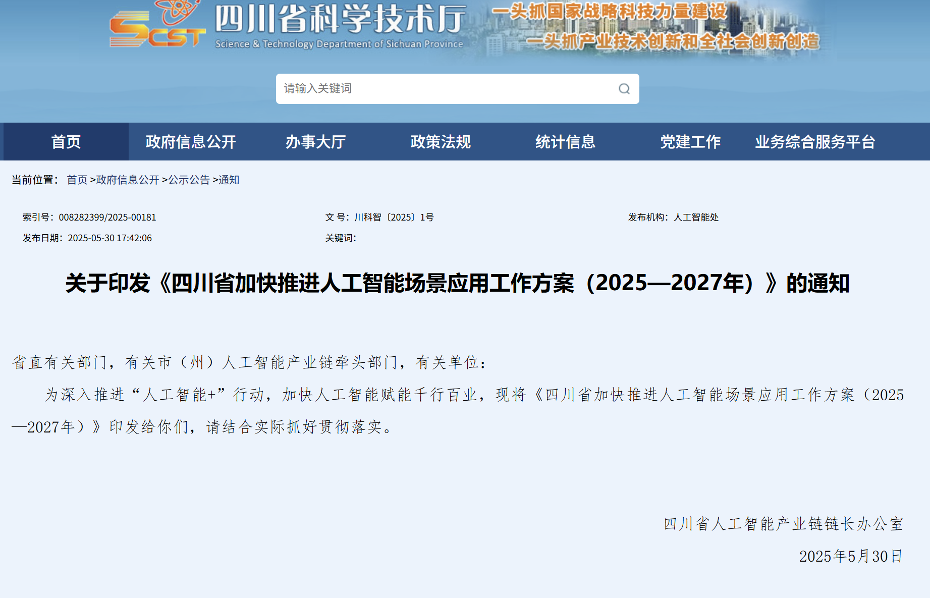 四川省加快推进人工智能场景应用工作方案(2025—2027年)