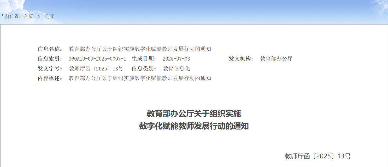 教育部办公厅关于组织实施数字化赋能教师发展行动的通知