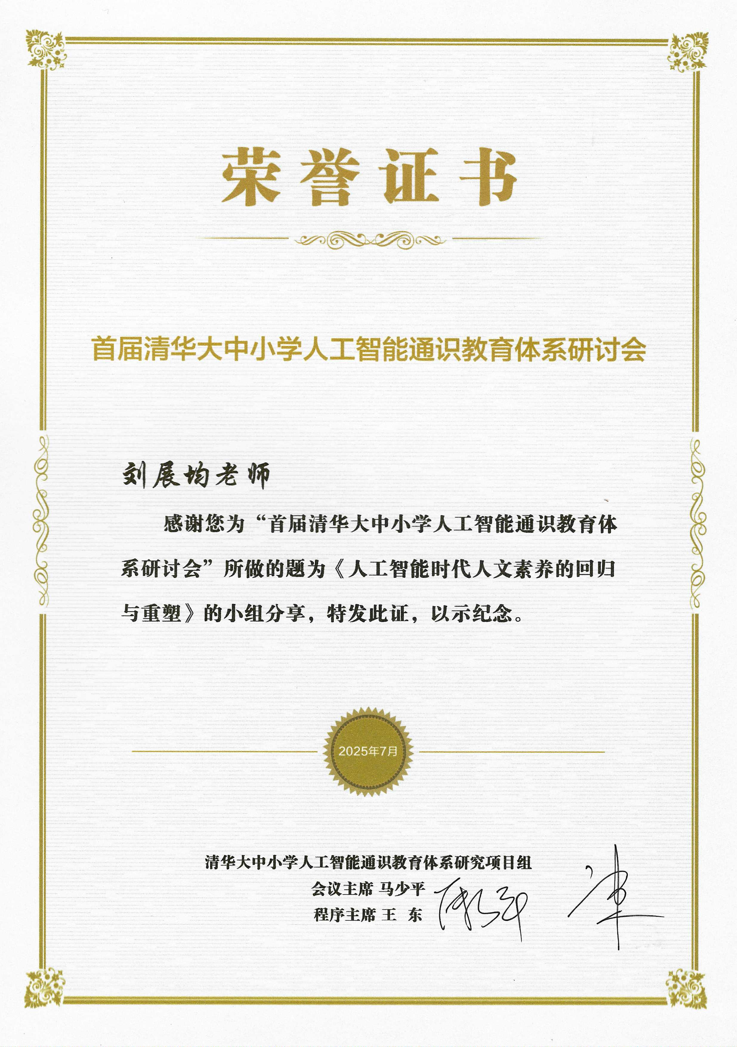 为贯彻落实《关于加快推进教育数字化的意见》《中小学人工智能通识教育指南(2025年版)》《中小学生成式人工智能使用指南(2025年版)》文件精神,探索人工智能通识教育的课程设计、课程内容、教学方法、评估体系、配套资源建设,构建具有大中小贯通的人工智能通识教育理论体系。清华大学计算机科学与技术系人工智能通识教育研究中心于7月25日至7月29日举办了首届清华大中小学人工智能通识教育体系研讨会。此次研讨会由清华大学计算机科学与技术系人工智能通识教育研究中心主办,清华大学附属中学、清华大学附属小学承办,清华大学出版社、北京中教全媒教育科技有限公司协办。会议还得到大圣光华教育集团、普开数据等企业的支持。