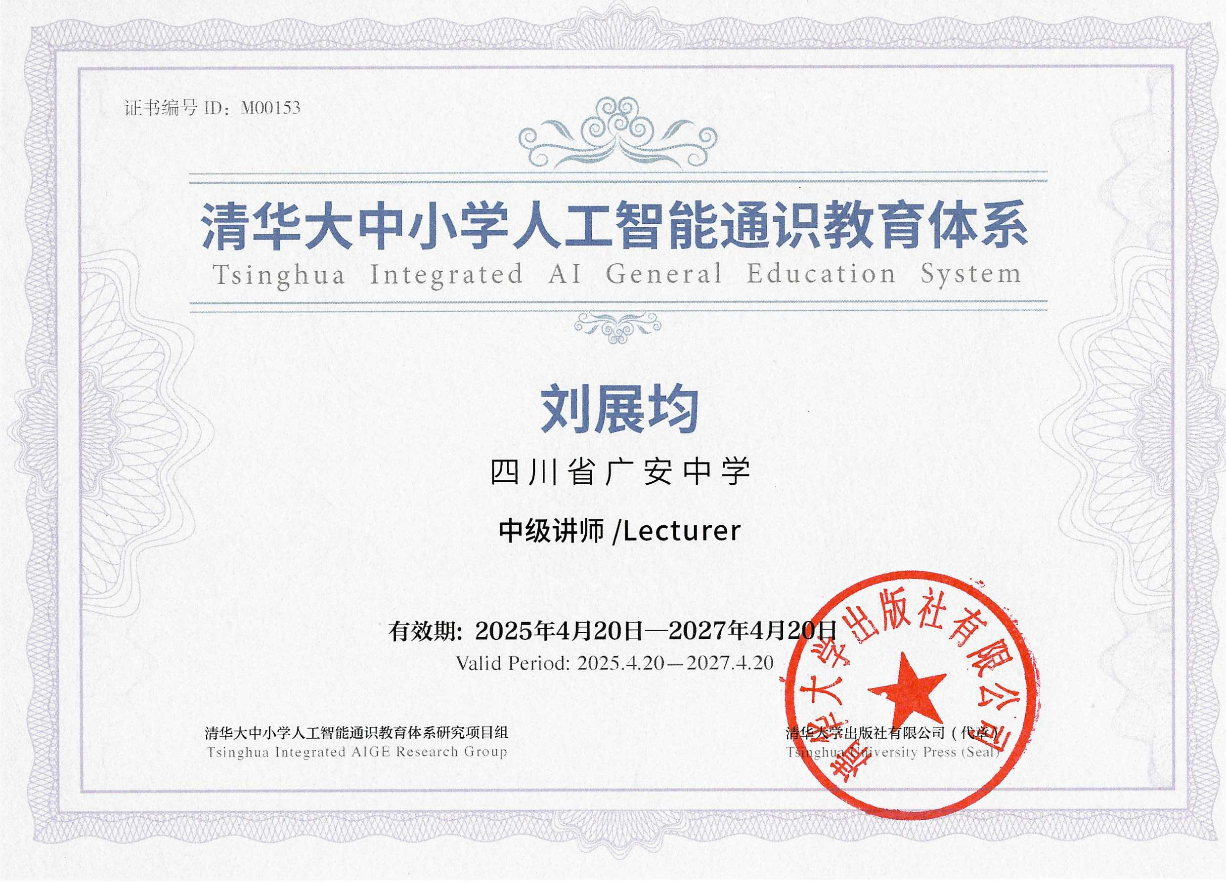 刘展均通过“清华大中小学人工智能通识教育体系”中级讲师认证 发布于 2025-04-22 最后更新于 20 天前 学术兼职 AI 摘要刘展均近期参加了“清华大中小学人工智能通识教育体系研究项目组”的远程答辩,并得到了三位高级讲师的肯定,顺利通过了中级讲师认证。 内容目录 近日,刘展均参与“清华大中小学人工智能通识教育体系研究项目组”组织的远程答辩,经过三位高级讲师一致认可,成功获得中级讲师认证。