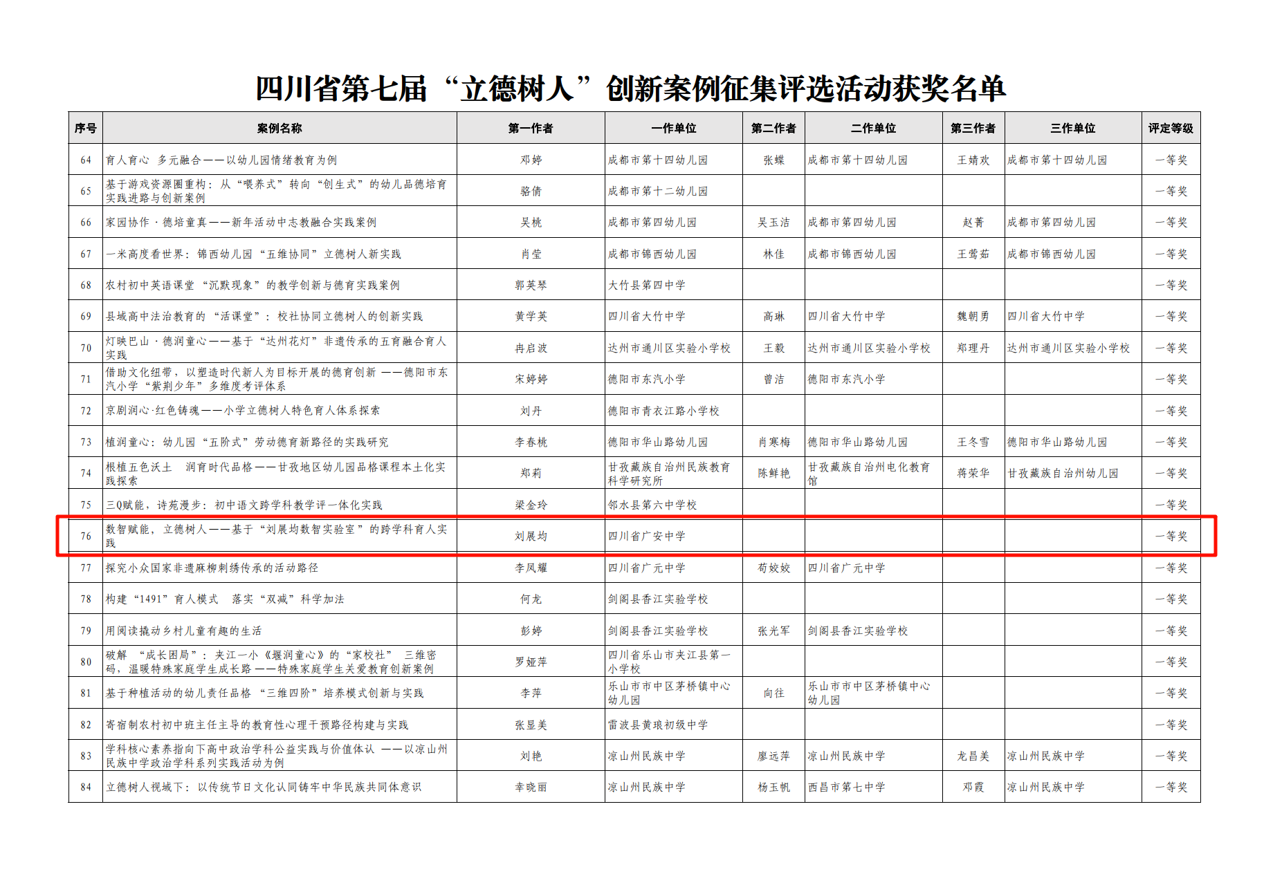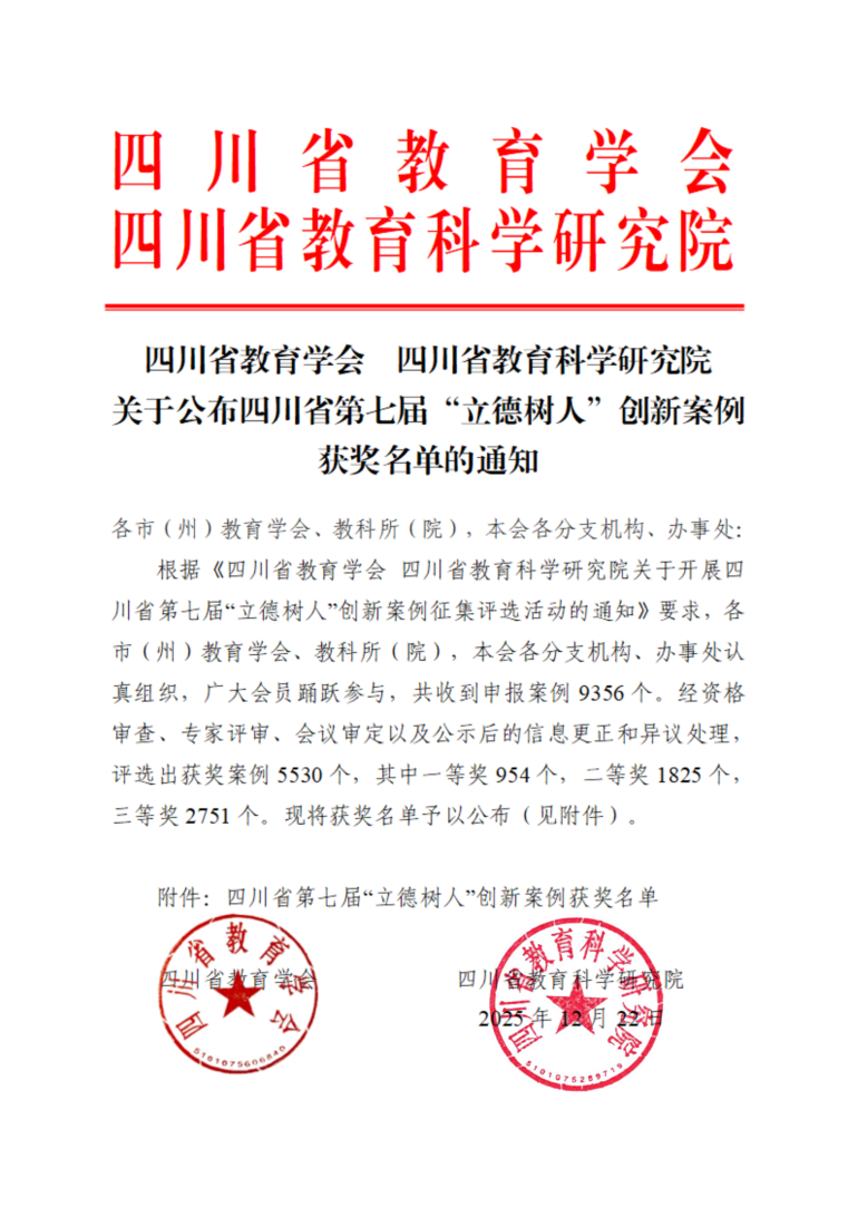 刘展均案例在四川省第七届“立德树人”案例评选中喜获一等奖