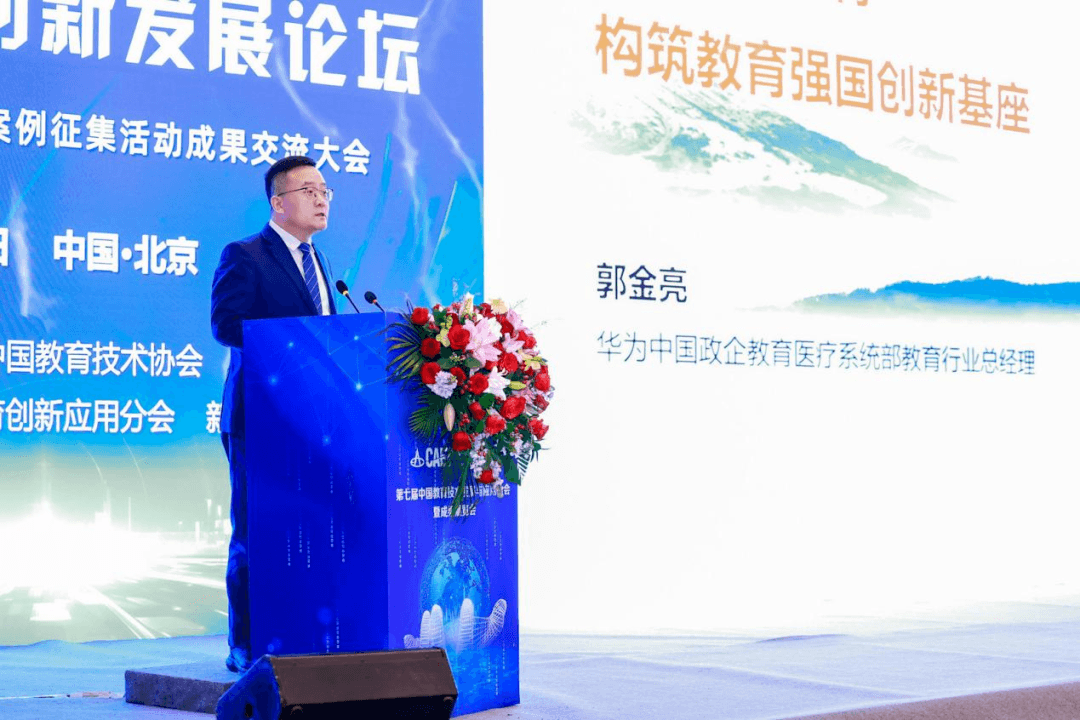 在本次成果交流大会的主旨报告中,华为中国政企教育医疗系统部教育行业总经理郭金亮以《扎根数智教育,构筑教育强国创新基座》为主题,借助丰富的案例,阐述了如何聚焦扎根技术,探索数字教育新机制、新模式、新形态,服务教育的全栈解决方案。