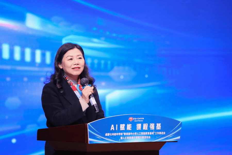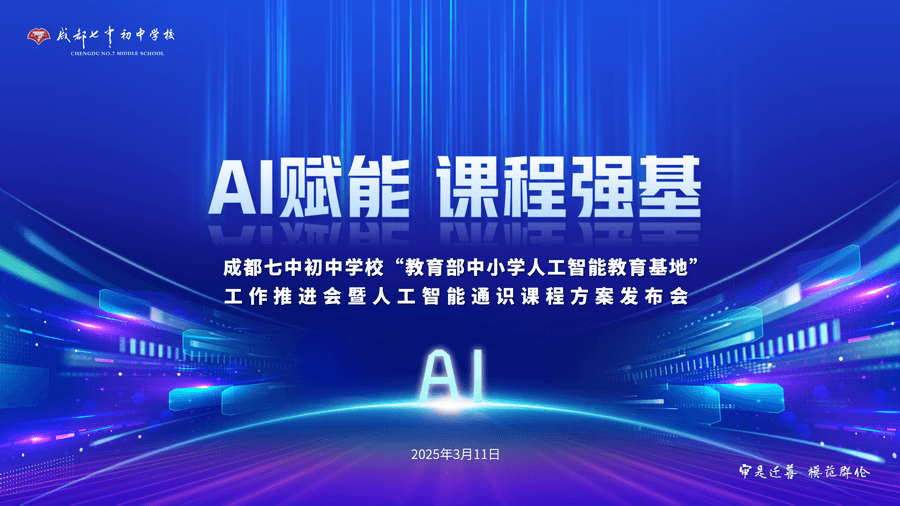 为贯彻落实教育部办公厅《关于加强中小学人工智能教育的通知》精神,扎实推进教育部中小学人工智能教育基地建设。2025年3月11日,成都七中初中学校成功举办了“教育部中小学人工智能教育基地”工作推进会暨人工智能通识课程方案发布会。本次活动以“AI赋能 课程强基”为主题,汇聚了政府、学校、家庭、社会和企业等多方力量,共同绘制了人工智能教育的新蓝图。
