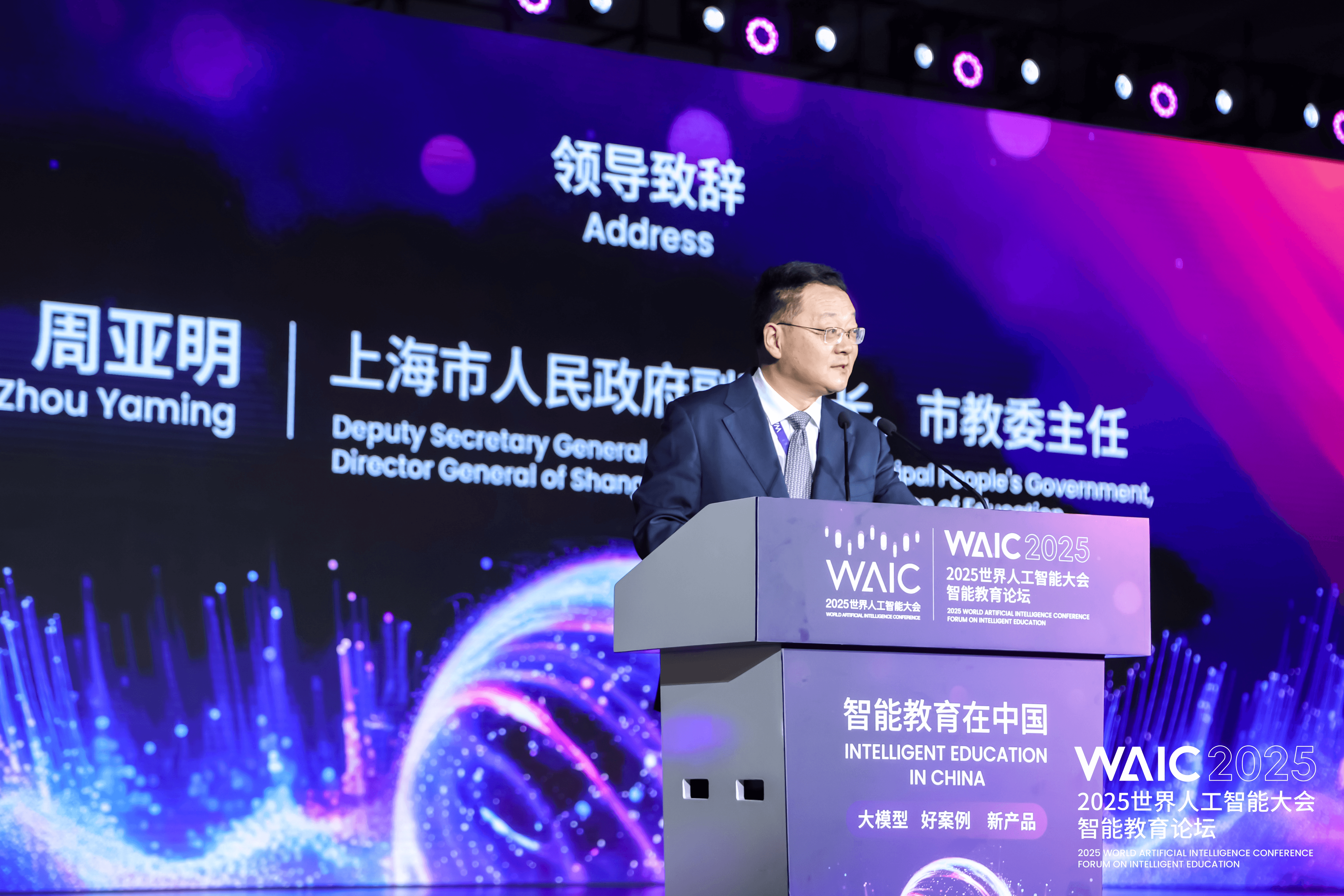 教育部科学技术与信息化司司长周大旺在致辞中表示,2025年是全球智能教育元年,围绕“学AI、用AI、创AI、护AI”实施人工智能赋能教育行动,强化人工智能人才培养、场景应用和规范治理,促进人工智能与教育深度融合。
