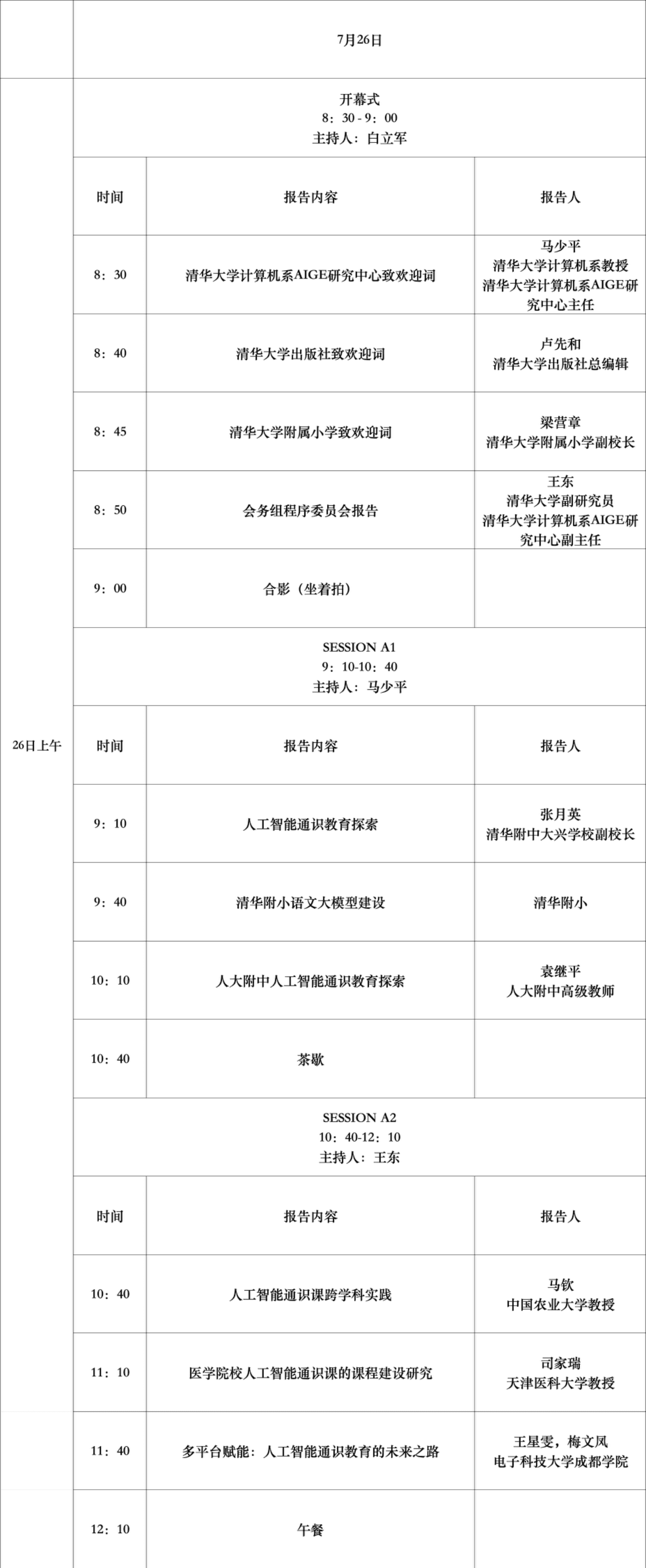 2025年7月25日至7月29日首届清华大中小学人工智能通识教育体系研讨会在京举行。此次研讨会由清华大学计算机科学与技术系人工智能通识教育研究中心主办,清华大学附属中学、清华大学附属小学承办,清华大学出版社、北京中教全媒教育科技有限公司协办。会议还得到大圣光华教育集团、普开数据等企业的支持。此次会议围绕“新挑战 新课程 新思维”的主题,探讨了人工智能通识教育的发展方向,分享了人工智能通识教育研究成果与实践经验,为推动我国人工智能通识教育的实际落地增添了新动能。会议有来自全国各地人工智能领域专家、学者、大中小学校长以及教师代表两百余人参加。