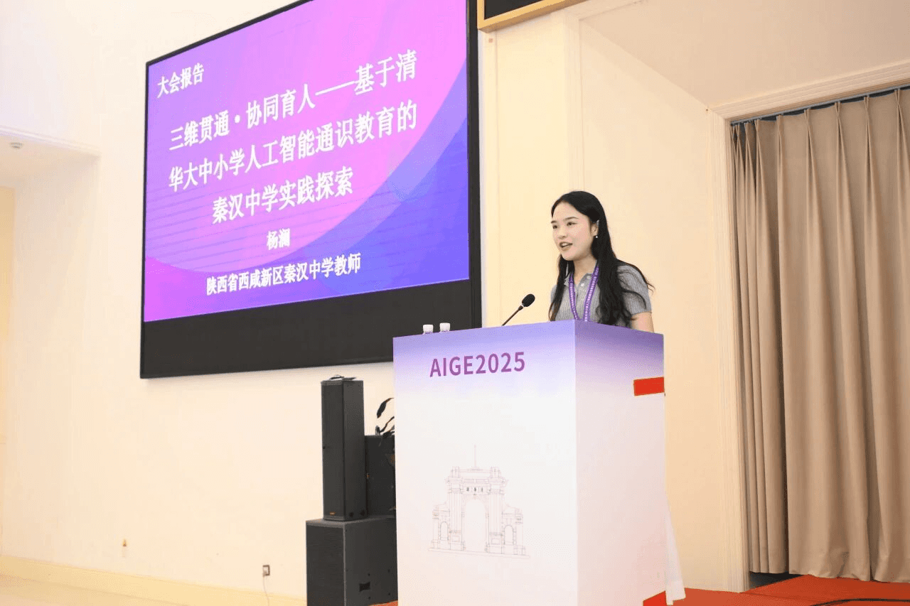 中国农业大学马钦教授围绕主题“人工智能通识课跨学科实践”、天津医科大学司家瑞教授围绕主题“医学院校人工智能通识课的课程建设研究”、电子科技大学成都学院王星雯围绕主题“多平台赋能——人工智能通识教育的未来之路”、清华附中合肥分校教师苏婷围绕主题“清华附中合肥分校人工智能通识教育与区域拓展”、清华附中秦汉学校教师杨澜围绕主题“三维贯通·协同育人——基于清华大中小学人工智能通识教育的秦汉中学实践探索”,分别介绍了本单位在人工智能教育方面的探索情况。