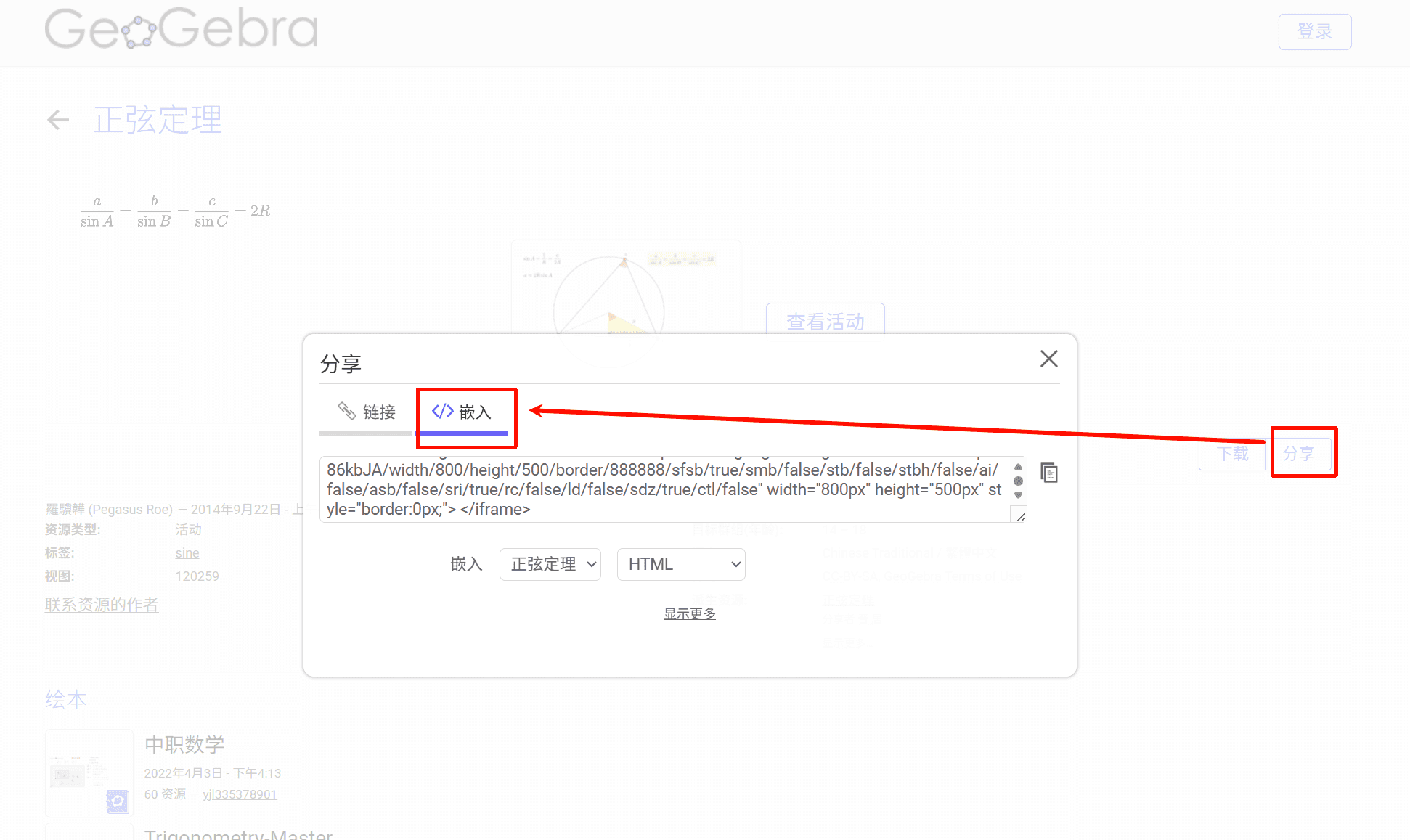再点分享-嵌入获取嵌入代码