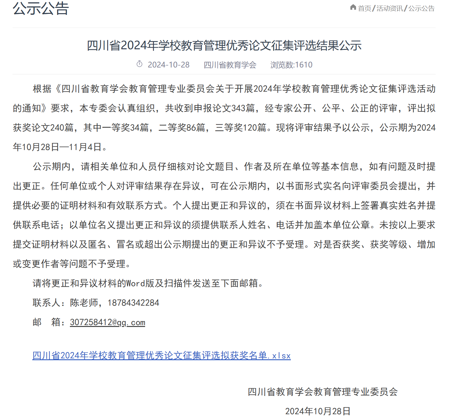 四川省2024年学校教育管理优秀论文征集评选结果公示:https://www.scsjyxh.com/article/13_1351_0_1768983.html