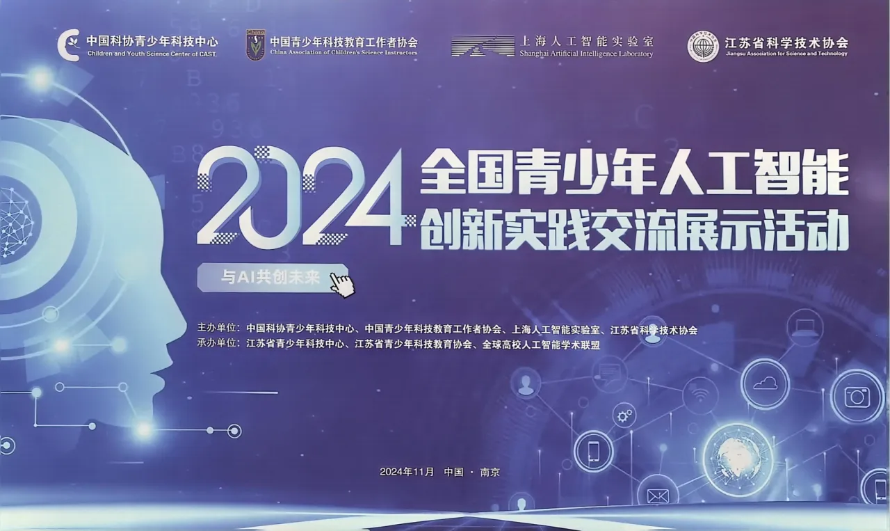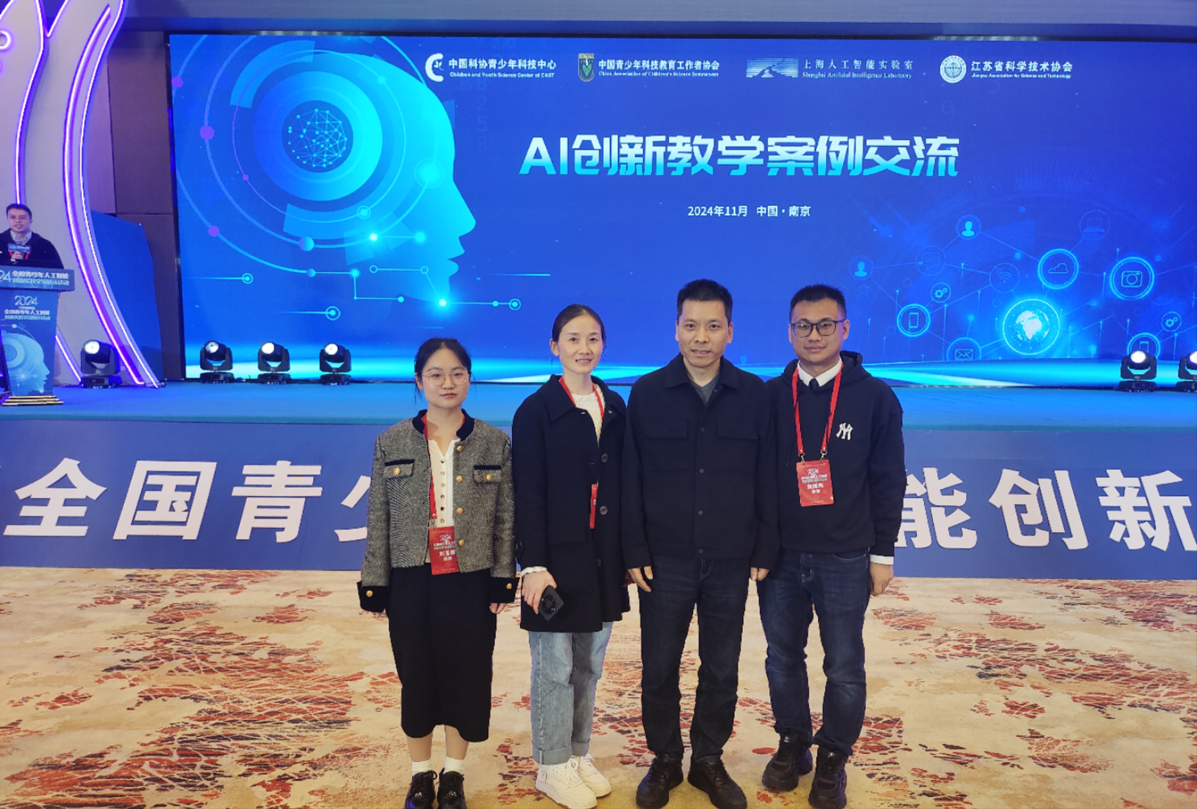 2024年11月24日,2024全国青少年人工智能创新实践交流展示活动在江苏南京圆满落幕。本次活动由中国科协青少年科技中心、中国青少年科技教育工作者协会等单位联合主办,以“与AI共创未来”为主题鼓励青少年在真实情境中深入学习最新的人工智能科技。其中,来自四川省广安中学刘展均老师的《生成式人工智能赋能跨学科项目式学习的实践》成功入选优秀案例,并在本次线下交流展示活动中分享。